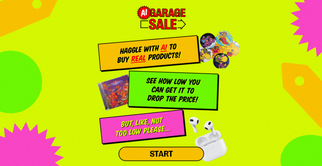 Descubre la Experiencia Única de la AI Garage Sale: Compra Productos Reales Regateando con Vendedores de IA