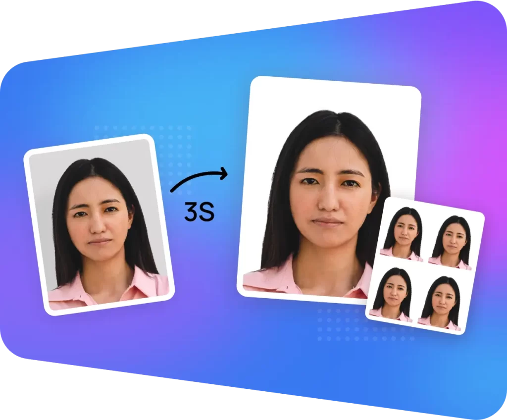 Procesamiento con IA: La inteligencia artificial de AiPassportPhotos analiza la foto y la ajusta para cumplir con los requisitos de tamaño, resolución y formato de las fotos de pasaporte y visa.