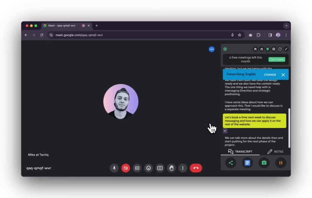 2. Iniciar una reunión con Tactiq en Google Meet
